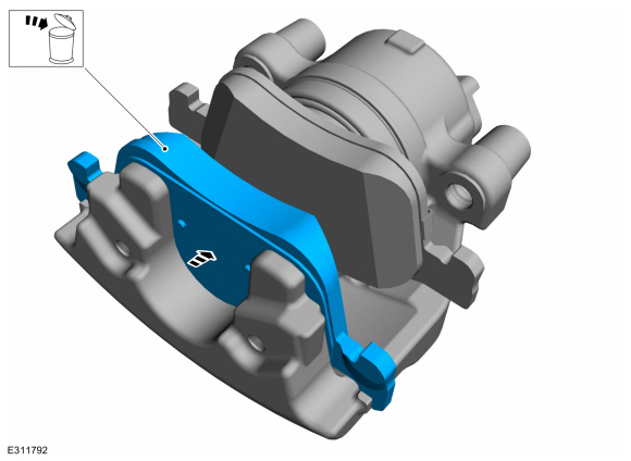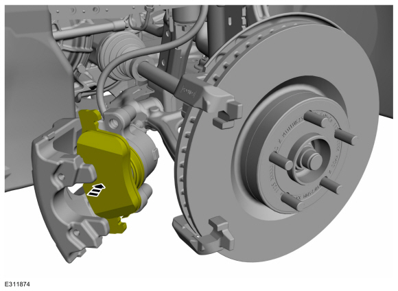 Separate the outboard brake pad from the brake caliper. Discard the brake pad.![]() |