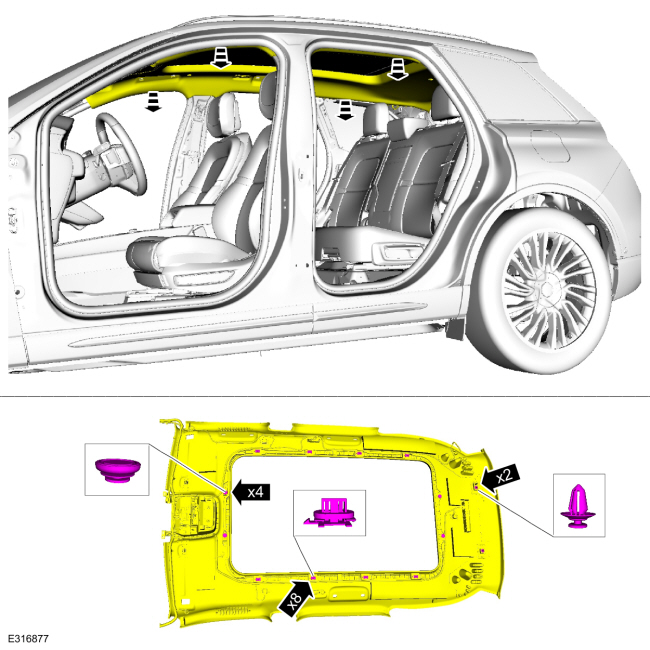 Lincoln Corsair: Interior Trim and Ornamentation / Removal and Installation - Headliner