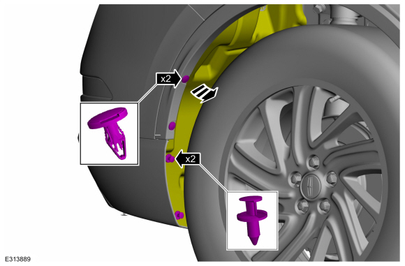 Remove the push pins, the trim pin and position the fender liner aside.