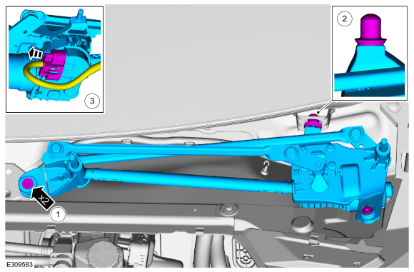 Removal and Installation - Windshield Wiper Pivot ArmWARNING: Do not adjust the steering wheel when your vehicle is moving.